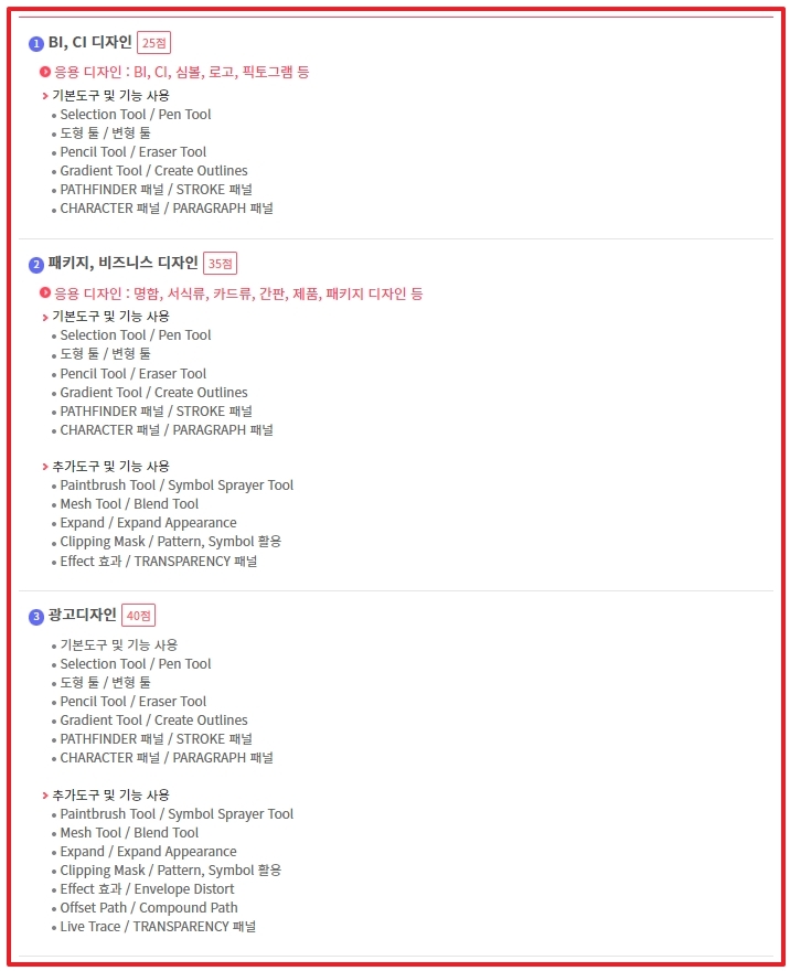 마지막으로 3번 문항에서는 기본도구, 추가도구를 모두 사용하여 광고 디자인하는 능력을 평가하게 됩니다. 이렇게 GTQi는 일러스트와 관련되어진 시험이다보니 디자인 능력을 평가하게 되는데요.