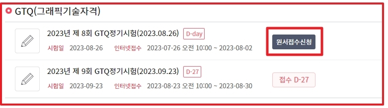 GTQ 자격시험은 1급, 2급, 3급 모두 동일하며, 매월 넷째 주 토요일에 정기시험으로 진행되고 있습니다. 2023년도 GTQ 자격시험은 8월 26일과 9월 23일, 10월 28일, 11월 25일, 12월 23일 총 5번이 남았습니다.